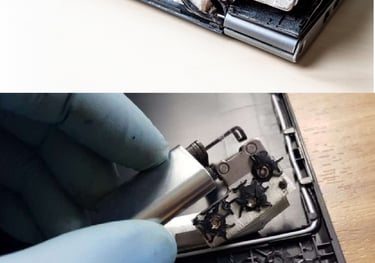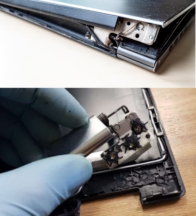 In majoritatea cazurilor NU este nevoie de alt capac al displayului sau de carcasa. Avem diverse metode de a repara "ca de fabrica" prinderile balamalelor in carcasa / capac. NU lipim cu plastic cald sau superGlue :)